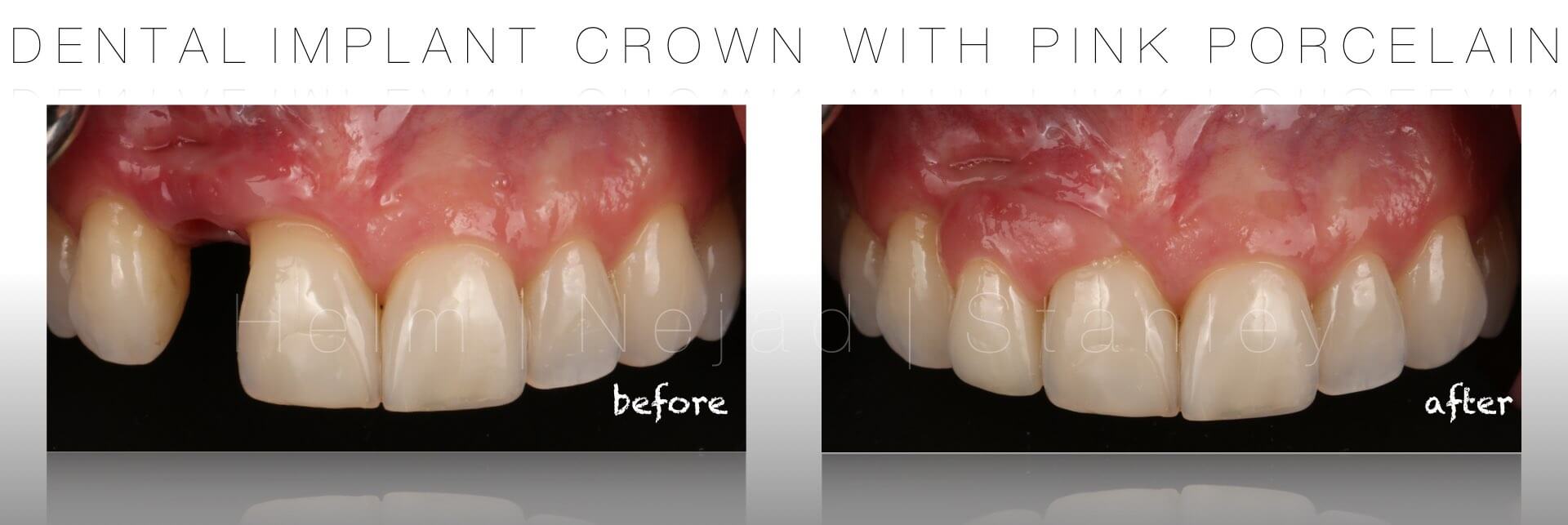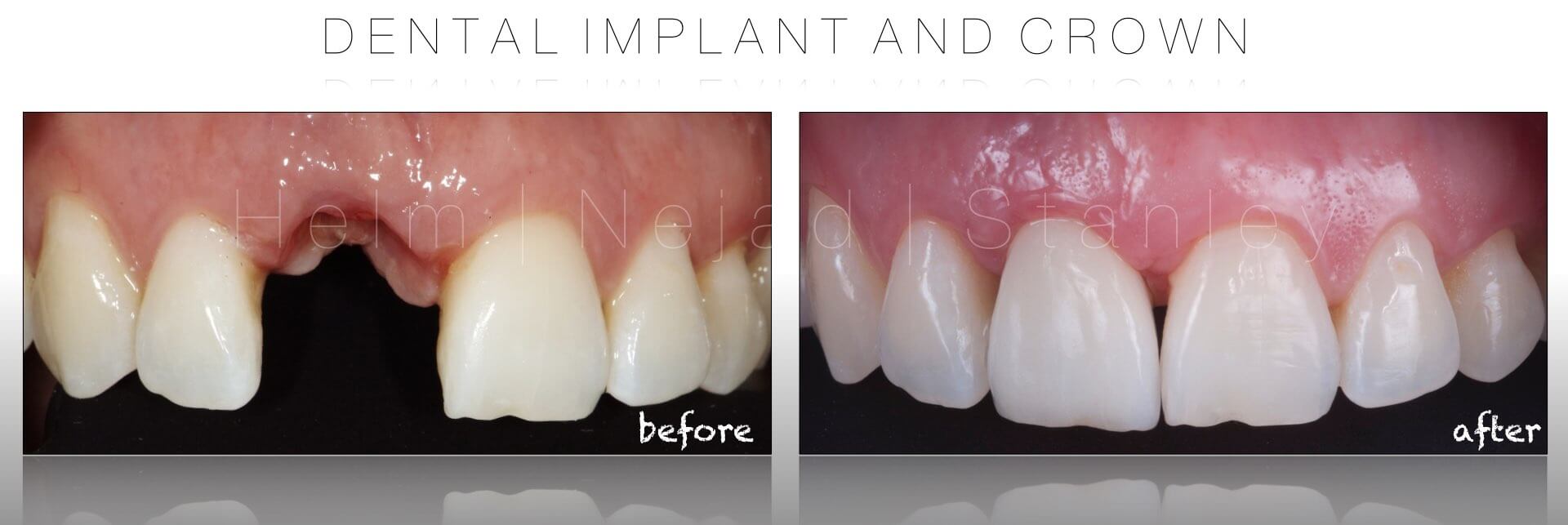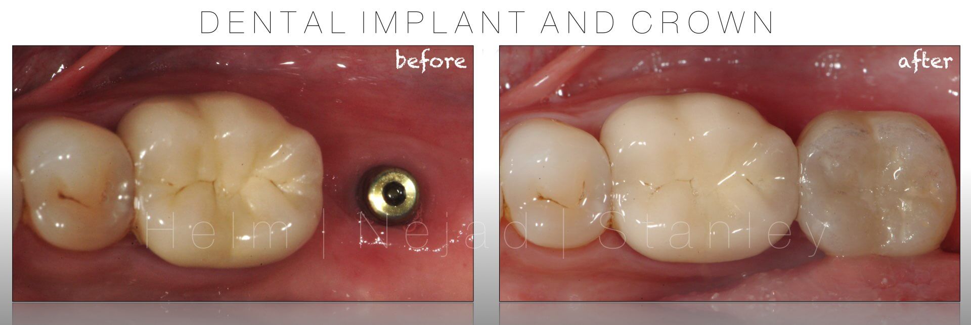 Implant Dentistry Photo Gallery Dental Implant Crown Single Dental Implant Case #2 This patient needed a full-mouth implant case and wanted a natural-looking smile. Full-Mouth Implants Full-Arch Implants Single Implant Single Implant Single Implant Implant and Crown Single Implant Smile Makeover Case #1 Full-Mouth Rehab